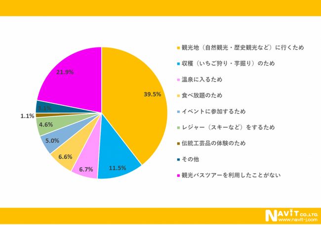 観光バスを利用する目的は、「観光地に行くため」が最多