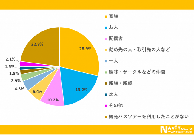 観光バスツアーを一緒に利用する人は、「家族」が最多