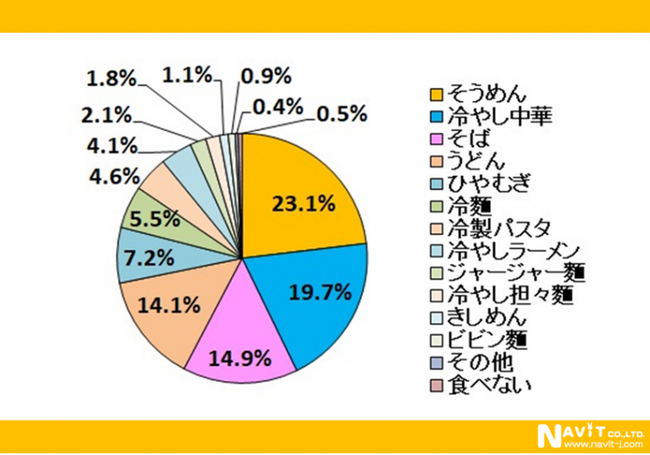 2位は「冷やし中華」19.7%、3位は「そば」14.9%でした。