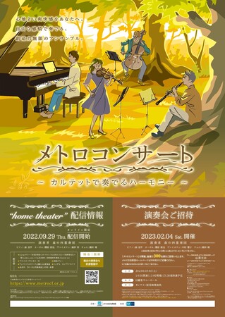 公益財団法人メトロ文化財団(東京都千代田区 会長:奥 義光)、東京地下鉄株式会社(東京都台東区、代表取締役社長:山村 明義)では、2022年9月29日(木)から「メトロコンサート〜カルテットで奏でるハーモニー〜」をオンラインにて配信します。また、2023年2月4日(土)に開催する貸切コンサートに抽選で300名様をご招待します。