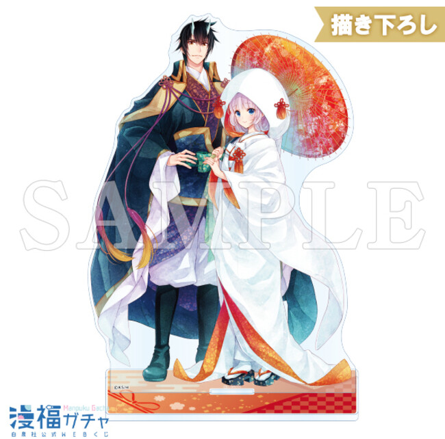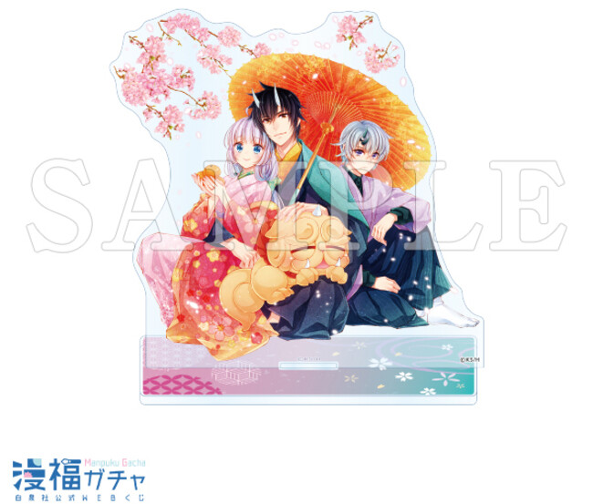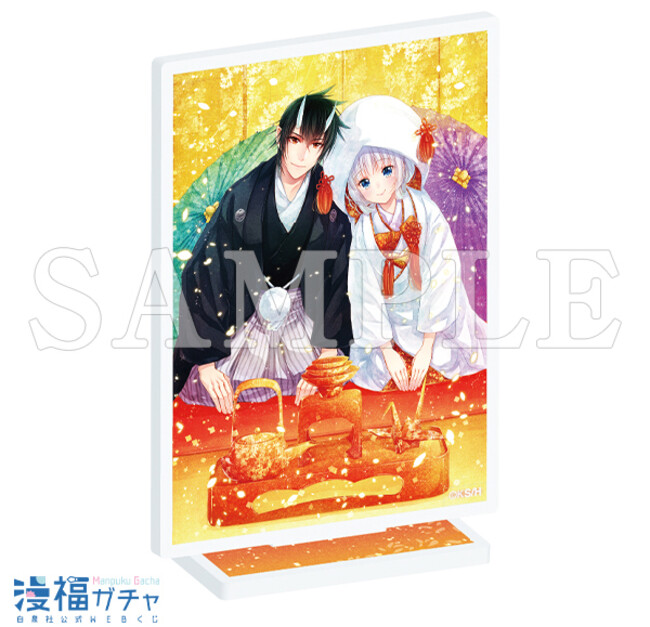 BIGサイズのアクリルスタンド! 本ガチャのための描き下ろしイラストと酒呑夫婦&狛丸&夜叉の集合イラストの全2種です(ハート)