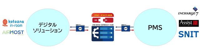 また、PMSとデジタルソリューションには複数の事業者があり、接続する際に発生する費用が課題でした。「JTBデータコネクトHUB」は、データをつなぐAPI※2を共通化することで、デジタルソリューション導入の障壁であるコスト負担も低減し、宿泊事業者がデジタルソリューションを導入しやすくします。