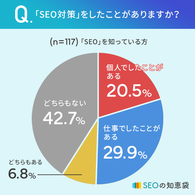 SEOを知っている57.3%の方が「SEO対策をしたことがある」と回答しています。