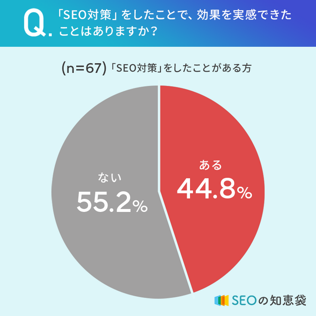 44.8%と、およそ半数近くの方が「SEO対策」をしたことで効果を実感できたことが「ある」と回答しています。