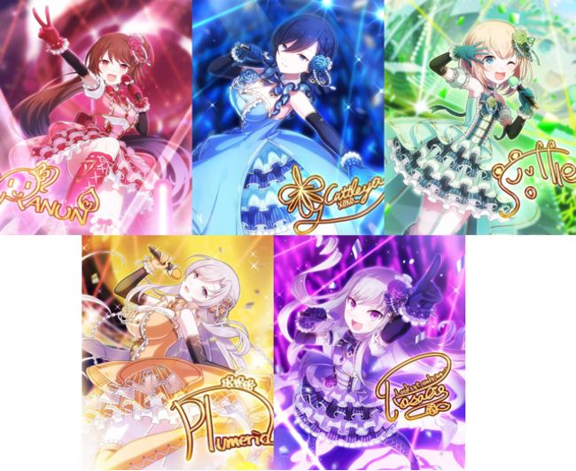 また、「サイリウム」を集めることで、7周年アイドル衣装を着用した5乙女をゲットすることができます。
