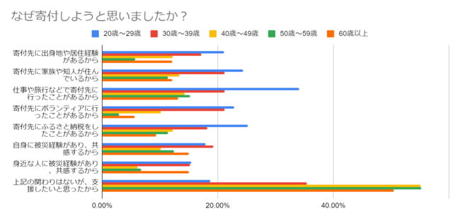 〜 災害支援への寄付経験が最もあるのは20代 〜 〜 20代は、旅行やふるさと納税などその地域との関わりが寄付の動機に 〜