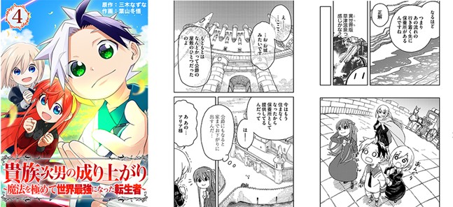 配信となる単行本2作は、三木なずな原作の異世界作品。どちらも単話連載10話分に加え、描き下ろしのマンガなどの特典を収録しております(『貴族次男の成り上がり〜魔法を極めて世界最強になった転生者〜(合本版)4巻』にはebookjapan限定特典付き)。また合本発売を記念して両作品の合本1巻および1〜10話までを無料公開。加えて『悪役令嬢、酒と理性はなじまない』、『女子高生神話 〜聖女は家に帰りたい〜』、『陰キャな私は異世界でスライムを作るのが仕事です【タテヨミ】』も6〜7話を無料で公開いたします。