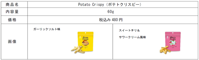 ●「Potato Crispy」は、九州産じゃがいもを使用し、軽い食感を追求した波型スティックカットで連食性を極めたシリーズです。まるでフライドポテトにディップを付けて食べているような、つまみやすさと連食性ある濃い目の味わいを再現しています。