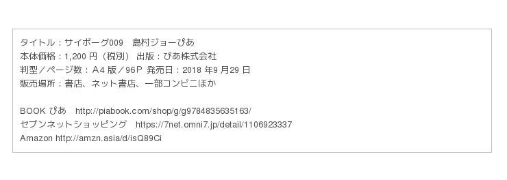 本日9月29日、ぴあ株式会社より『サイボーグ009 島村ジョーぴあ』が発売となりました。