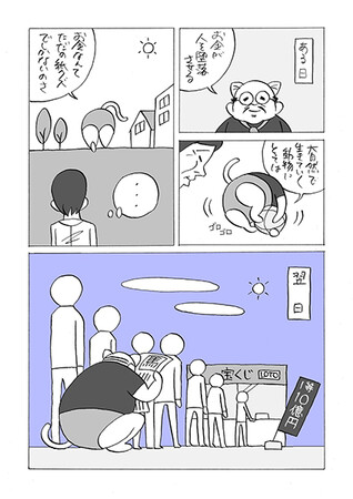 お!おまえ!ええやんええやん!ノラ猫になった部長ええやんええやん!1番シュシュっといっとたな!4ページの中で異質でシュールなおもしろさふんだんに入っとって尚且つわかりやすかったな!でも弟子やったらパンパンにするよ!
