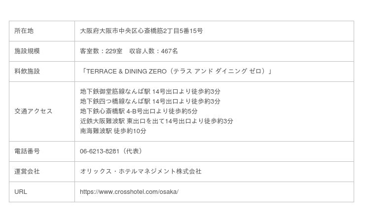 クロスホテル大阪は、これからも、「この街、このホテルで過ごすかけがえのないひととき」をコンセプトに、お客さまにおくつろぎいただける環境をご提供し、その街ならではの魅力をお届けできるよう努めてまいります。