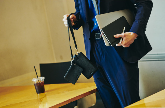 ビジネスシーンにだって溶け込むゾンネのスマホショルダー