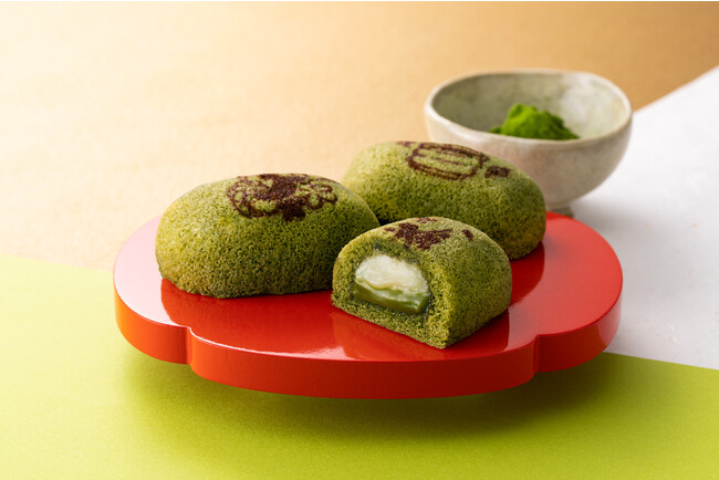 宇治抹茶とミルク、2種類のなめらかなクリームを宇治抹茶のふわふわスポンジ生地で包みました。生地の天面には、東京ばな奈やお茶をモチーフとした日本らしい4種類の絵柄が描かれています。香り豊かな宇治抹茶を丁寧に練りこんだ「お抹茶ケーキ」をめしあがれ。