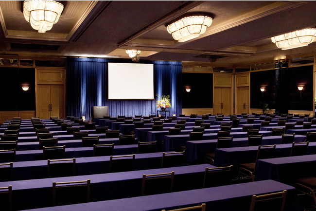 大宴会場「ギャラクシールーム」は、1,002 平方メートル の広さと5m の天井高を誇る壮麗な空間。フロア貸切で約1,800 平方メートル もの広さになり、大規模なイベントの実施も可能となります。また、フロアに専用の搬入口があるため、自動車などの展示会にも最適です。