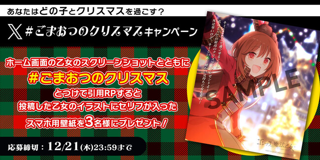「ゴシックは魔法乙女」公式Xアカウントの対象ポストに対し、撮影したスクリーンショットと「#ごまおつのクリスマス」のハッシュタグをつけて引用リポストするとキャンペーン応募完了!!