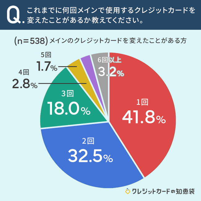 さらに、これまでに何回メインで使用するクレジットカードを変えたことがあるか聞いてみました。
