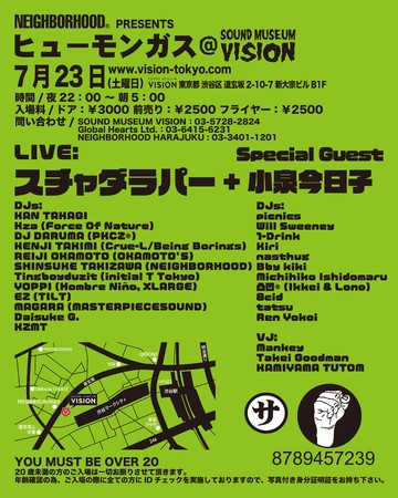 NEIGHBORHOOD主催の伝説的なDJイベント “HUMUNGUS” がVISIONで開催。メインアクトには小泉今日子をスペシャルゲストにスチャダラパーのライブを敢行!