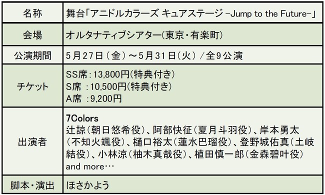 舞台「アニドルカラーズ キュアステージ -Jump to the Future-」公式サイト:https://products.voltage.co.jp/anidol-curestage-jttf/