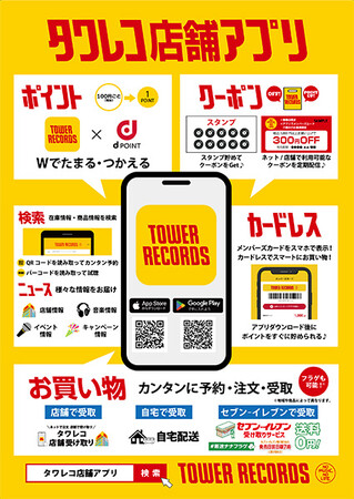 公式アプリ「タワレコ店舗アプリ」では、アプリ限定のクーポン配信など、お得なサービスが盛りだくさん。まだダウンロードしていない方にも、よりお得にタワーレコードをご利用いただけるよう、当キャンペーンで口コミの輪を広げていきます。