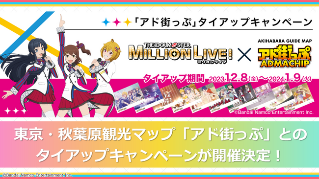 アニメ「アイドルマスター ミリオンライブ!」と東京・秋葉原観光マップ「アド街っぷ」とのタイアップキャンペーンの開催が決定しました。