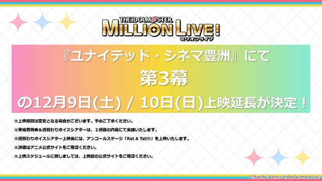 『ユナイテッド・シネマ豊洲』にて12/9(土)&12/10(日)の2日間、第3幕の上映延長が決定!