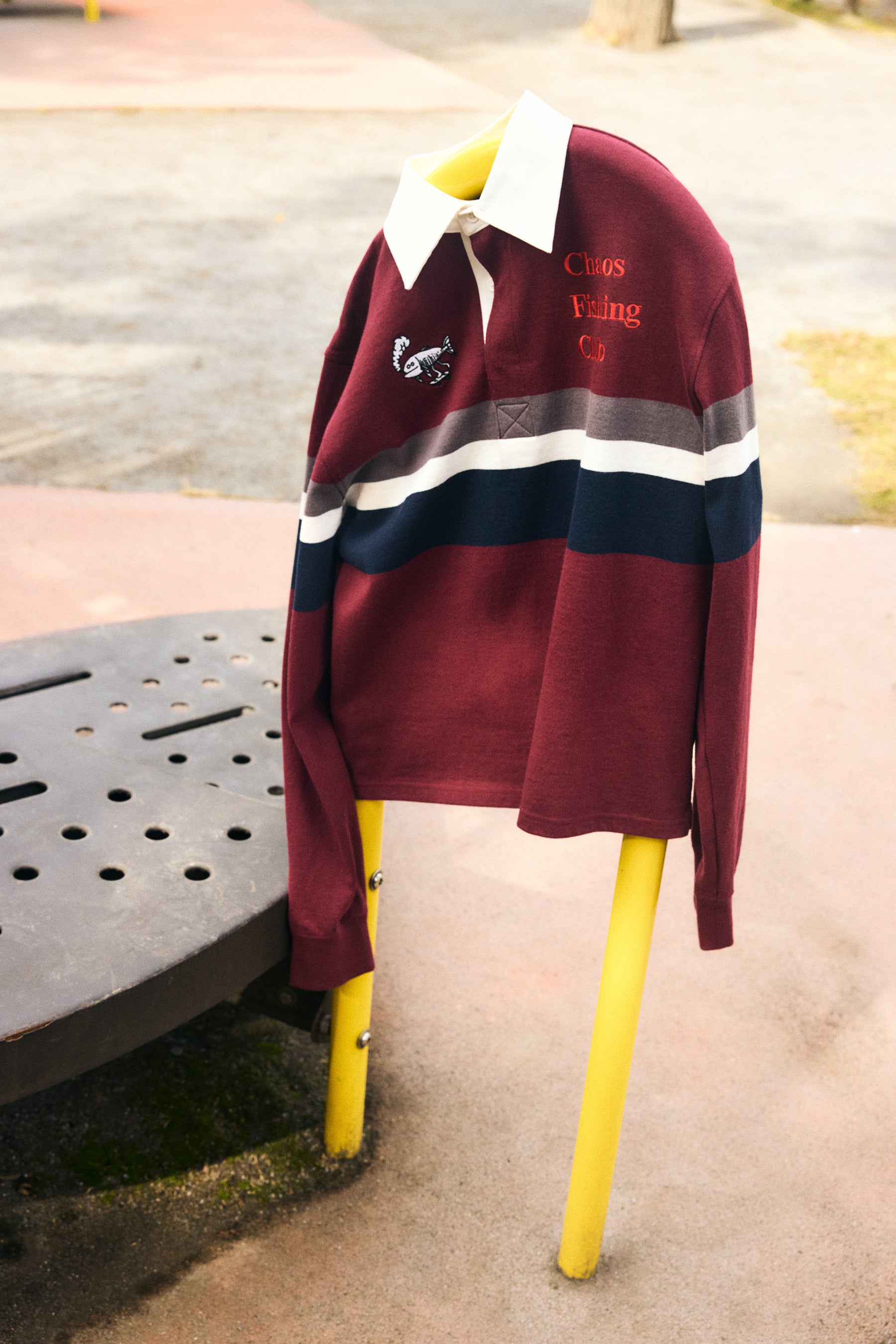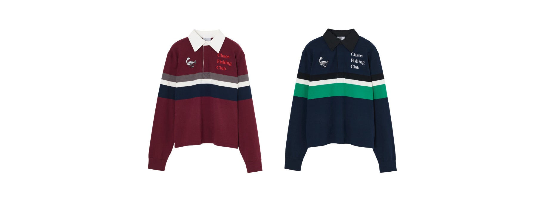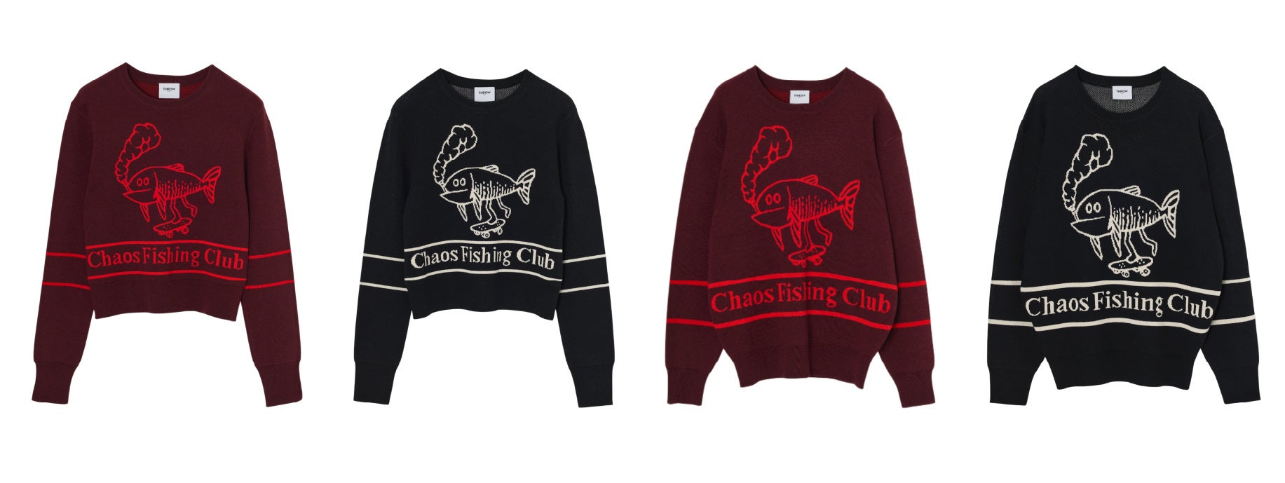 ブランドコンセプトの「てきとうにやっちゃうよ?」の刺繍を入れてラフに使えるキャップ、Chaos Fishing Clubの代名詞でもある「OSAKANA KUN」を胸元に施したラガーシャツやニットトップスの他、暖かみのある素材を使用し大胆なロゴがインパクトのあるブルゾン、パンツなど計5型が発売します。