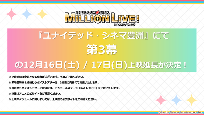 『ユナイテッド・シネマ豊洲』にて12/16(土)&12/17(日)の2日間、第3幕の上映延長が決定!