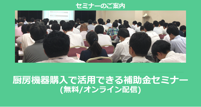 【8/23より】厨房機器購入で活用できる補助金セミナー(無料/オンライン)