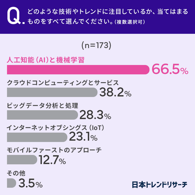 ■66.5%が「人工知能(AI)と機械学習」に注目している