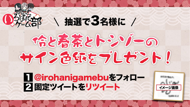 番組Twitter開設を記念して、抽選で3名様に伶と春茶とトシゾーのサイン色紙をプレゼントいたします。