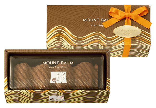ねんりん家の代表作「マウントバーム しっかり芽」を栗の旨味とともに焼きあげ、さらにマロンの香るショコラとマイルドショコラの味わいをとろりと重ねがけした今だけのバームクーヘン。生地には“2種類のイタリア産マロン”を練りこみ、“マダガスカル産バニラ”をしっとり溶かし込むことで、モンブランを頬張った時のような芳醇な香りとコク深さをほっくりと閉じ込めました。その上から“マロン香るショコラ”をとろ〜りと大胆に流しかけ。まろやかな栗のうまみと香りを心ゆくまでご堪能いただけます。仕上げに、モンブランケーキをイメージしたミルクショコラ風味のラインで秋色デコレーション。自分へのご褒美や大切な方へのギフトにもピッタリな特別感のある一品です。