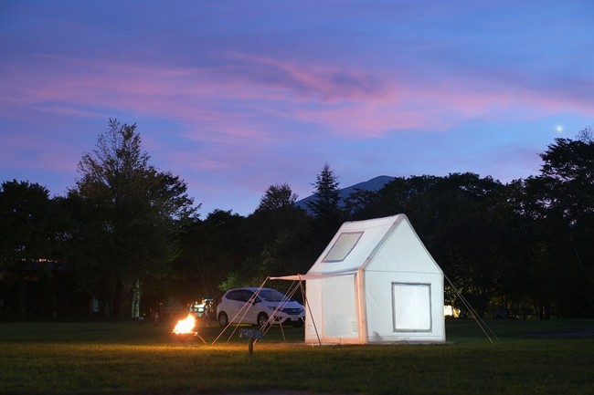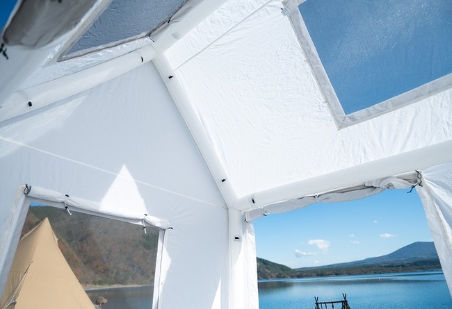 AirArchitecture(エアアーキテクチャ)は美しい四季がある日本で「いつでもどこでも気軽に」アウトドアを楽しむリラックスライフスタイルを提案したい、という思いから、建築家の視点でテントを空気の建築物として解釈しデザインされました。