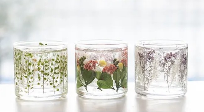 お好きなドライフラワー入れ放題のボタニカルジェルランタンキャンドルを作成。インテリアとしても素敵なキャンドル。