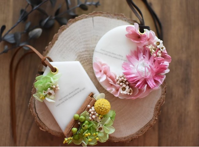 火を灯さずに飾って香りを楽しむことができる大人気のボタニカルサシェを2点作成。お好みのドライフラワーと香りを選んで、天然由来のソイワックスでナチュラルテイストに仕上げます。