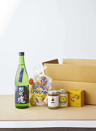 旭川「高砂酒造」の辛口純米酒にバタじゃがのほか、北海道産素材を使ったクラッカーやバーニャカウダソースなどをセットにしました。