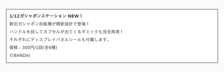 ※「ガシャポン(R)」は株式会社バンダイの登録商標です。