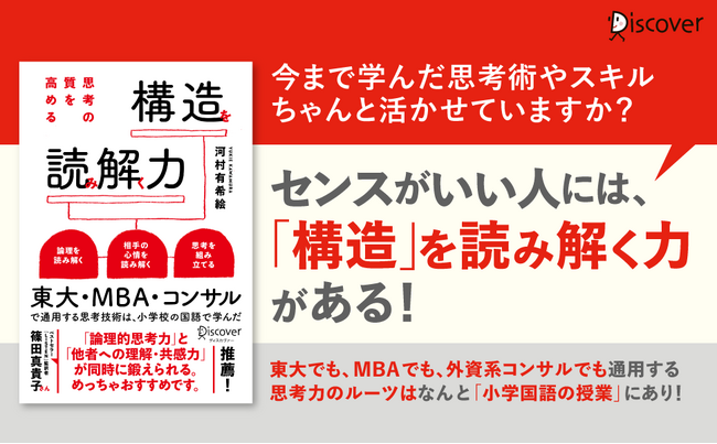 河村氏がこれらの実績の基礎スキルになったと語るのは、小学3年生のときの「構造学習論」をベースとした読解の授業で培った「構造を読み解く力」だといいます。