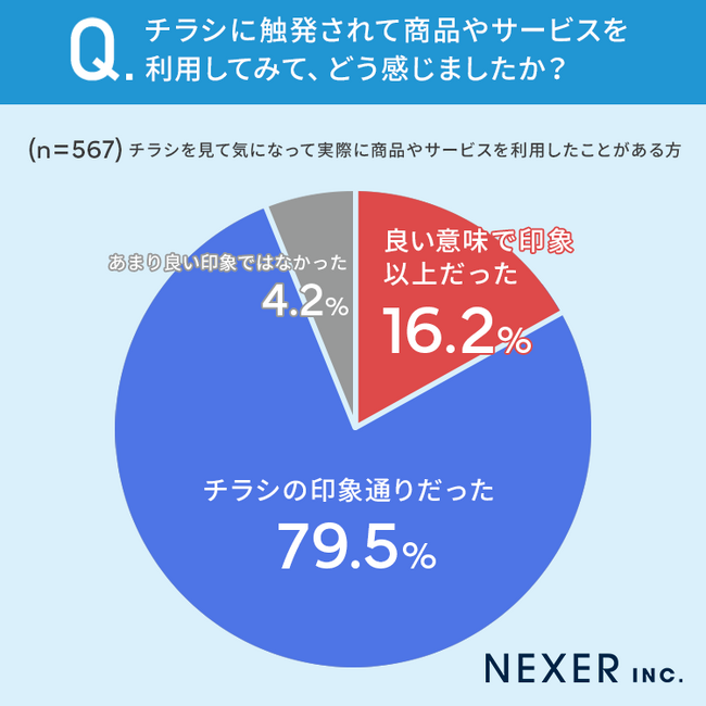 さらにチラシに触発されて商品やサービスを利用してみて、どう感じたか聞いてみました。