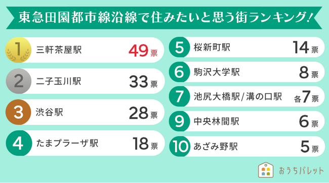 おうちパレット(運営会社:株式会社NEXER)は、東急田園都市線沿線の住みたい街に関する調査を実施し、その結果をサイト内にて公開しました。