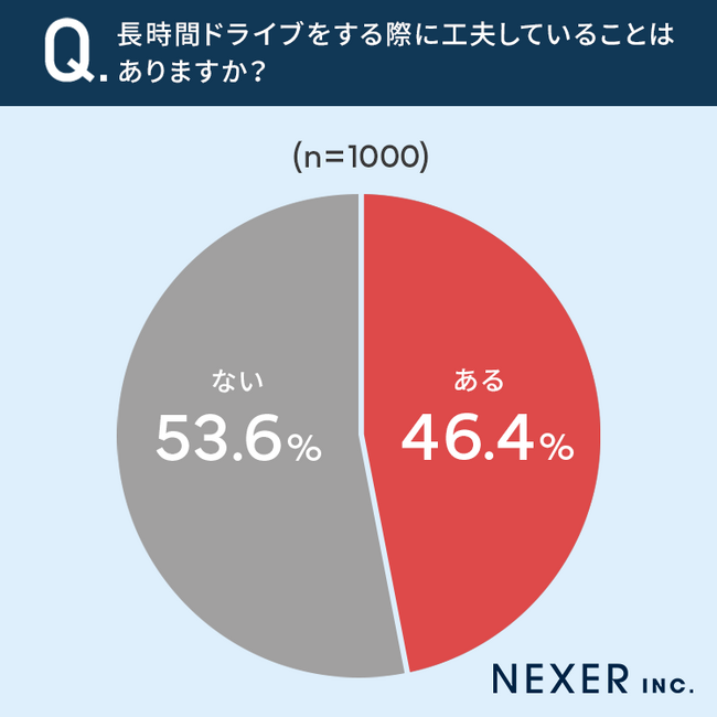 ■46.4%が長時間ドライブをする際に工夫していることが「ある」