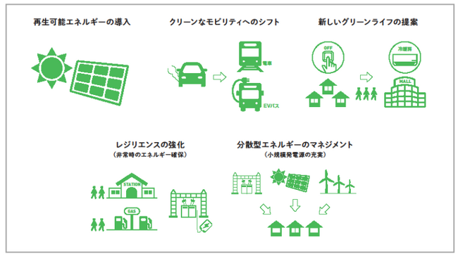 本連携において、都心や郊外、観光地などのさまざまな当社グループの事業フィールドにおける、再生可能エネルギーや蓄電池などの導入によるエネルギーの地産地消、鉄道の省エネルギー化やバスの電動化、MaaSの推進による便利でクリーンなモビリティの提供、これらを通じて持続可能なまちづくりに貢献していきます。