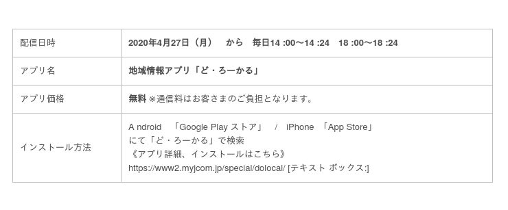 <地域情報アプリ「ど・ろーかる」配信概要>
