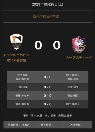 ノジマTリーグ 2023-2024シーズン 公式戦 10月28日開催 トップおとめピンポンズ名古屋 vs 九州アスティーダ オーダー発表