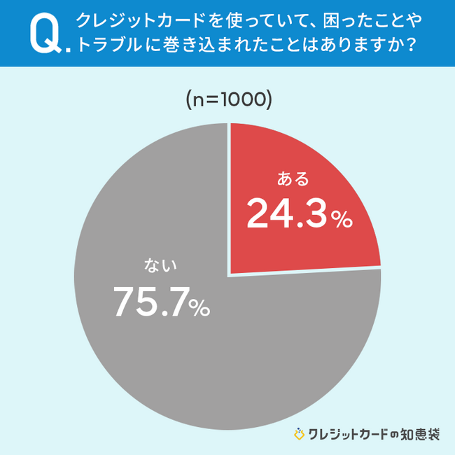 24.3%と約4人に1人が、クレジットカードを使っていて困ったことやトラブルに巻き込まれたことが「ある」と答えていました。