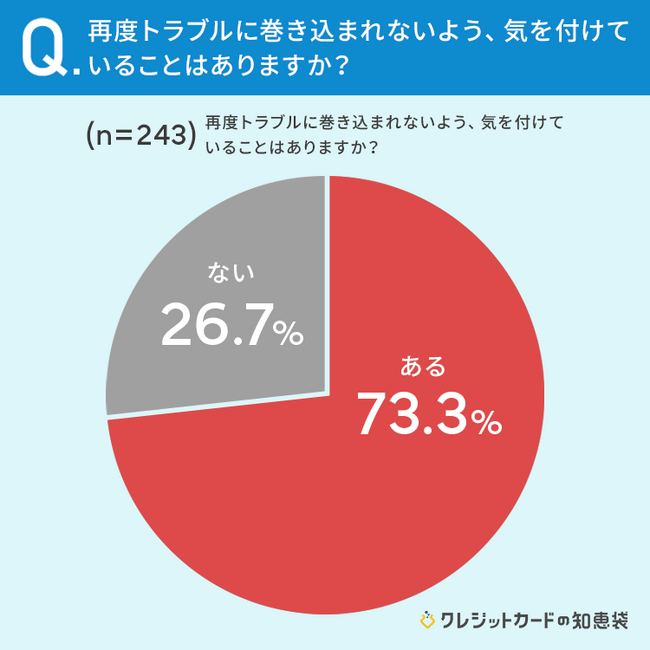 ■73.3%が再度トラブルに巻き込まれないよう、気を付けていることが「ある」