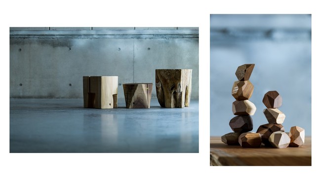 商業空間や什器の製作を数多く手がけ、その製材過程で生まれた端材をアップサイクルしたプロダクトはすべて1点モノで表情豊か。