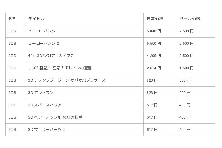 株式会社セガゲームス コンシューマ・オンライン カンパニーは、2016 年 3 月 30 日(水)〜4 月 20日(水)9:59 までの期間限定で、ニンテンドーe-shop にて販売中の一部タイトルを、割引価格にて販売するキャンペーン『春らんまん!花よりゲームだ!セガ祭り』を実施いたします。