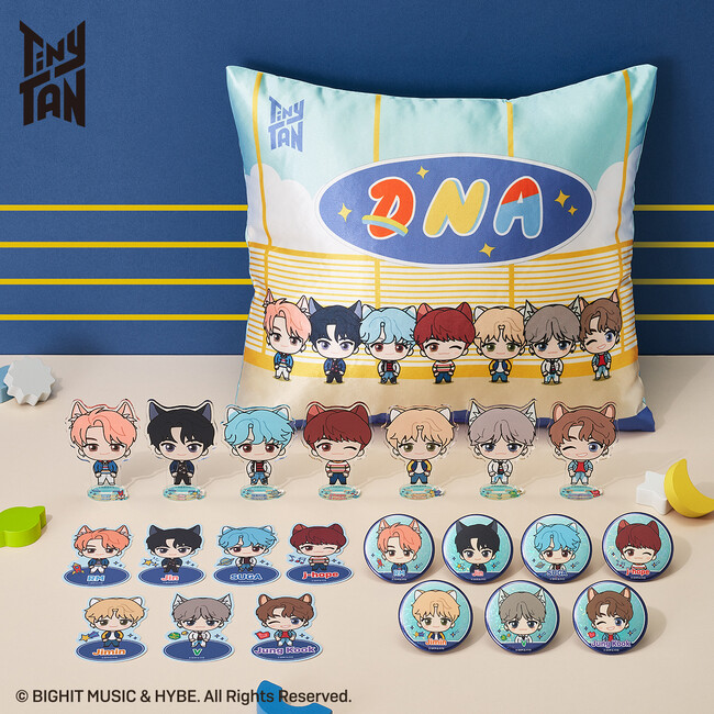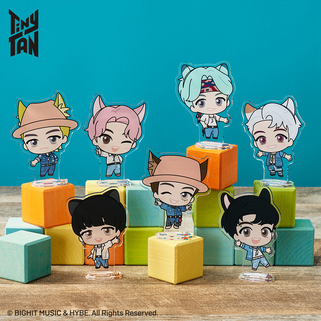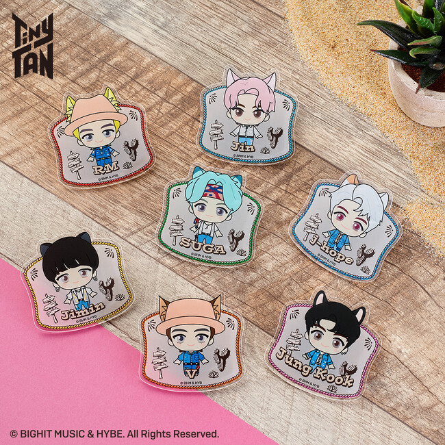 「TinyTAN FUN PARK 2023」に登場する「Permission to Dance」「DNA」「Boy With Luv」の衣装をまとい、ねこ耳カチューシャを付けたTinyTANのイラストを使用したオリジナル商品を販売します。なお、会場にて『TinyTAN』関連商品をお買い上げのお客さまに、ねこ型カード(全7種)をランダムでプレゼントします。