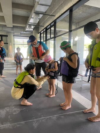 参加者からは、「物事は入り口が大切だと思うので、 ウォーターアクティビティ全般に通じる安全対策も子供に理解しやすく良かったです」「ライフジャケットの付け方、大切さから教えていただき、勉強になりました。水の怖さもありましたが、丁寧に指導してくださったので、沈まないことで安心して参加できました」と言った声をいただきました。
