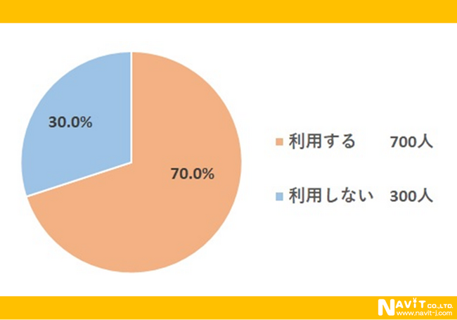アンケート対象者の7割が、コーヒーチェーン店を「利用する」と回答しています。